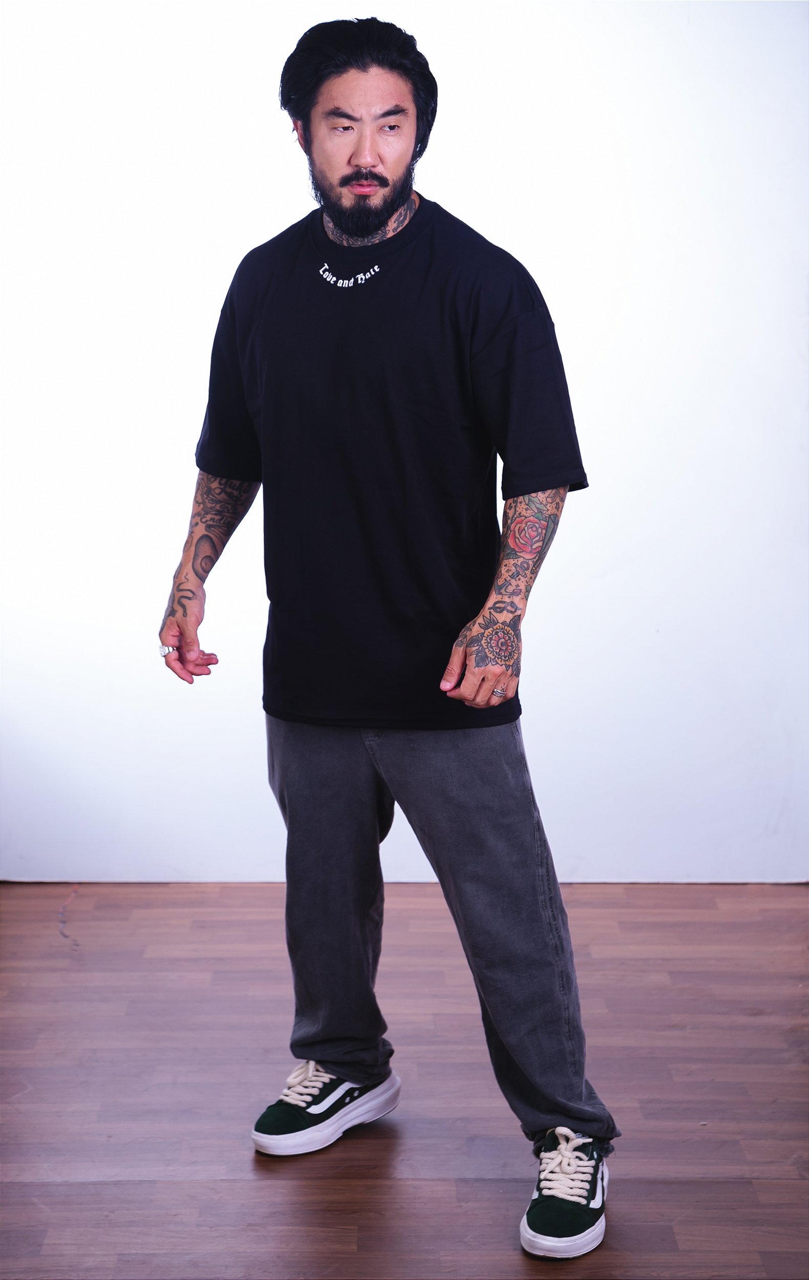 Esta camiseta é feita de SUEDINE, um tecido macio, confortável e resistente, que se adapta ao seu corpo. Tem um design moderno e criativo, que combina com vários estilos e ocasiões.